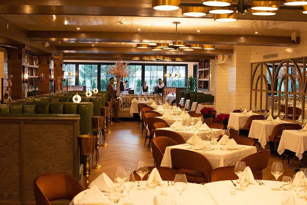 There are over 200 seats inside the restaurant and, on the first floor, an open kitchen that allows guests to see their meals prepared in plain sight. In warmer weather, an outdoor patio nestled among the property’s trees will add another 100 seats. The interior is divided into small sections, with two floors, each with its own bar and dining areas. The intention was to keep each seat intimate, regardless of where you are in the bustling restaurant.