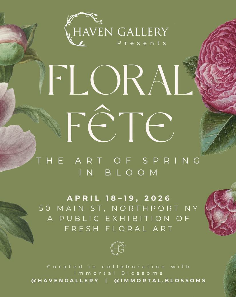 “Floral Fête: The Art of Spring in Bloom” will be open to the public on Saturday, April 18 from 1:30 to 6pm, with a reception from 3 to 5pm, and Sunday, April 19, from 1:30 to 6pm. Haven Gallery is located at 50 Main Street in Northport. For more information, visit @havengallery and @immortal.blossoms on Instagram.