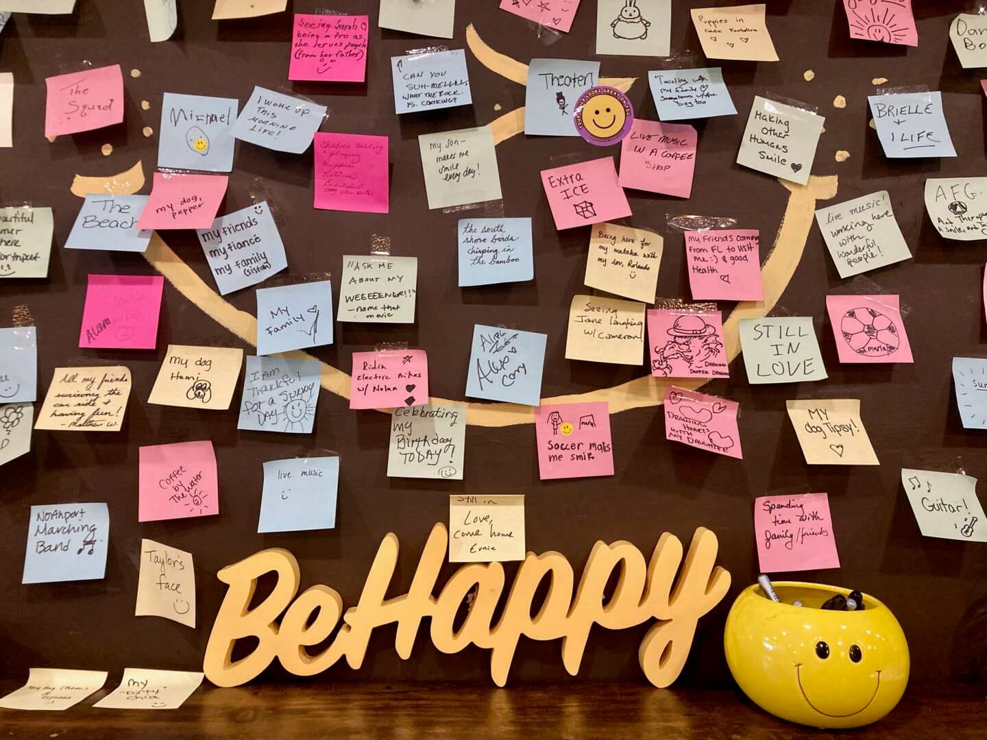 People soon began contributing to the wall themselves, sharing what had been making them happy at the time. “Little did they realize that the more they were coming to add to my wall – because now they’re thinking more about what makes them smile – the more they were focusing on the good,” Neumann said. “So now it’s going to come back tenfold. Not only is it making me happy, but it’s making everyone around me happy. It’s creating this ripple effect of positivity.”