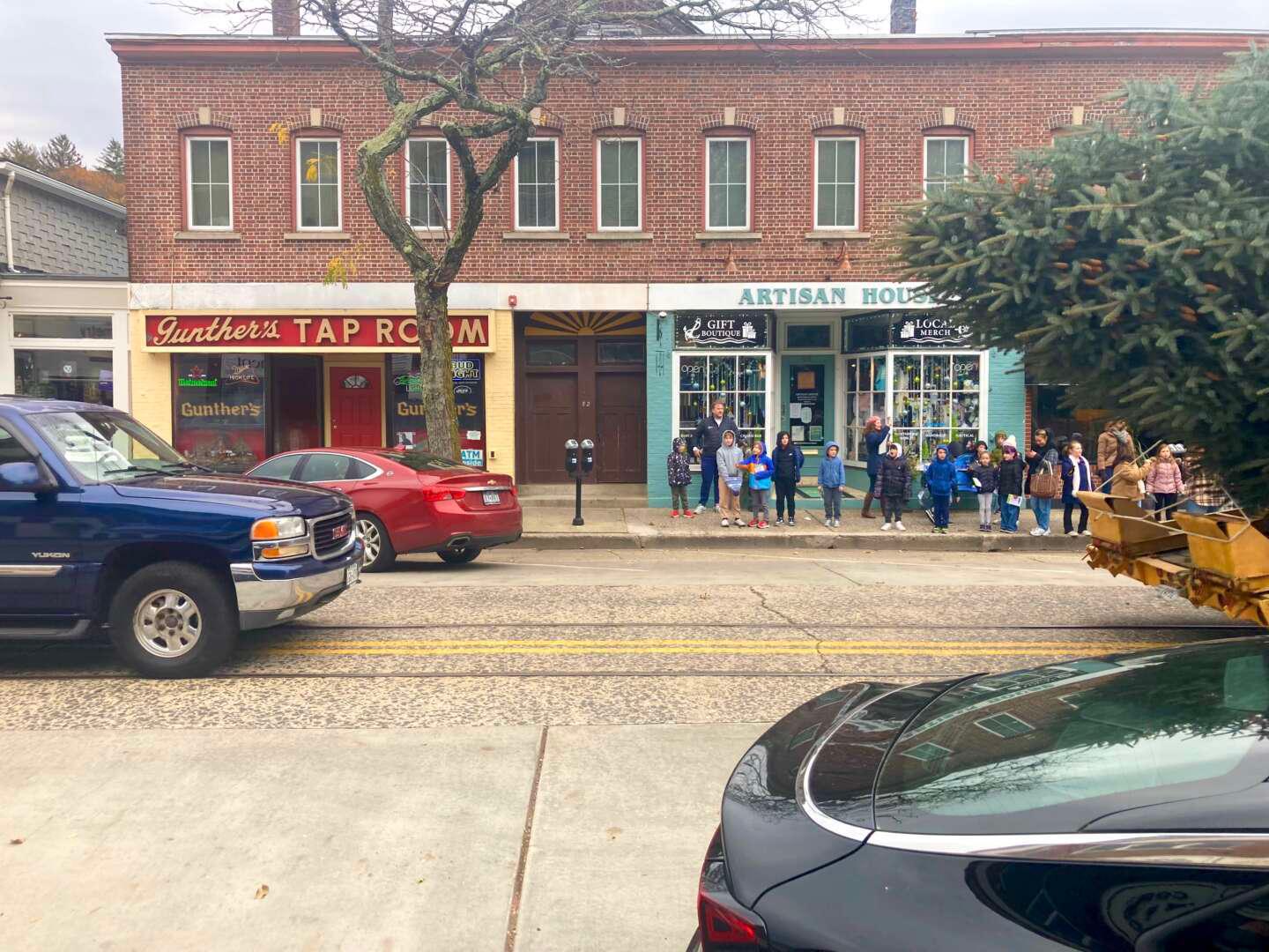 “A lot of people, when they see the truck coming, everybody runs out,” Meyer said of the parade of Village vehicles that escort the tree to its holiday location. In years past, he’s taken photos of the pageantry from just outside Artisan House. This year, he and Gothelf joined the parade in their Jeep, while grateful onlookers, including Northport Village Mayor Donna Koch, waved from the sidewalk.